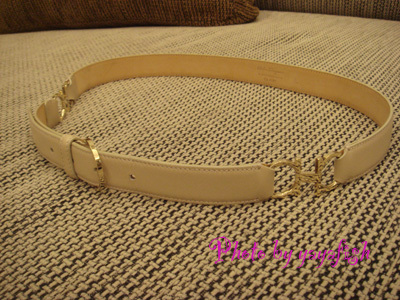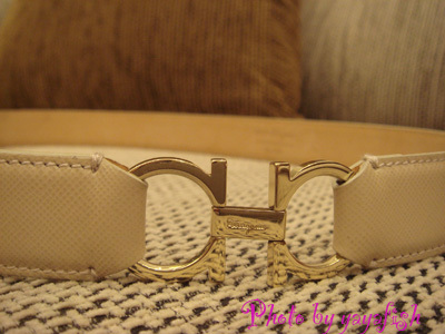 這條是米白色 兩側是ferragamo經典logo~金色的Gancino馬銜鏈扣環