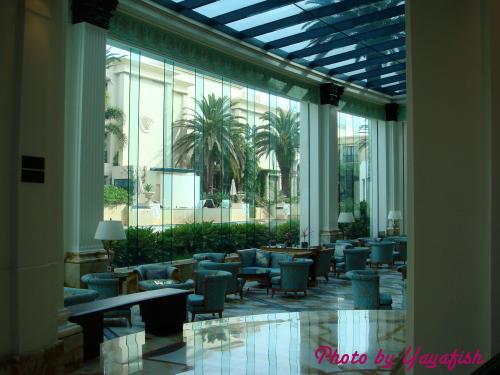 大廳正後方 就是飯店的室外游泳池 (落地玻璃後就是游泳池)
