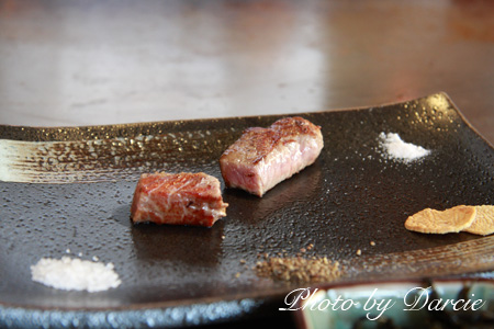 最後 是一連串香煎牛排 可以搭配各式各樣的海鹽 還有超香的蒜片