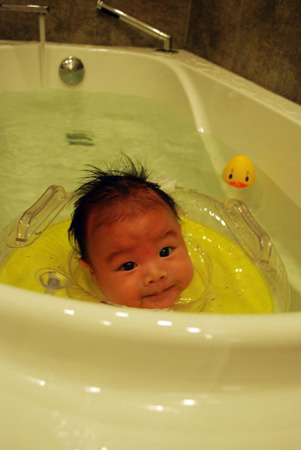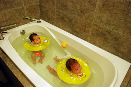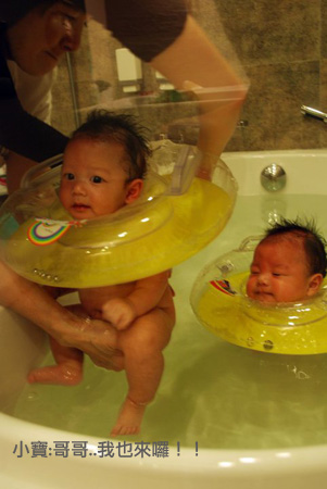 兩人初次游泳反應不錯 以後再來試試我從美國帶回來的泡泡浴吧!!